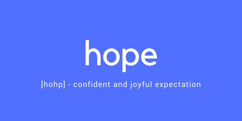Hope is used in the Bible as both a noun and a verb. The verb is often translated as “trust.” The believers’ hope is defined as “joyful and confident expectation of eternal salvation.” It has to do with the unseen, and the future. According to Blue Letter Bible, the verb “hope” (Greek word elpizō) always appears with one of three propositions: