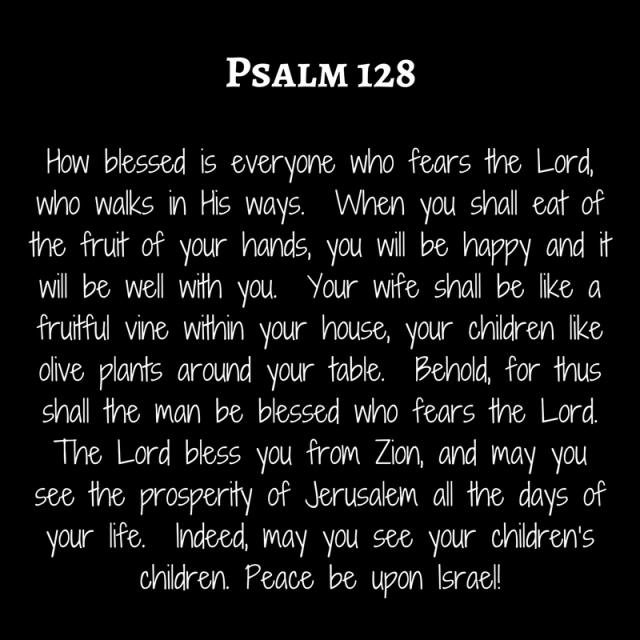 Your wife shall be like a fruitful vine within your house, your children like olive plants around the table.