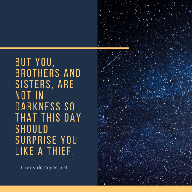 “But you, brothers and sisters, are not in darkness so that this day should surprise you like a thief.” (1 Thessalonians 5:4)