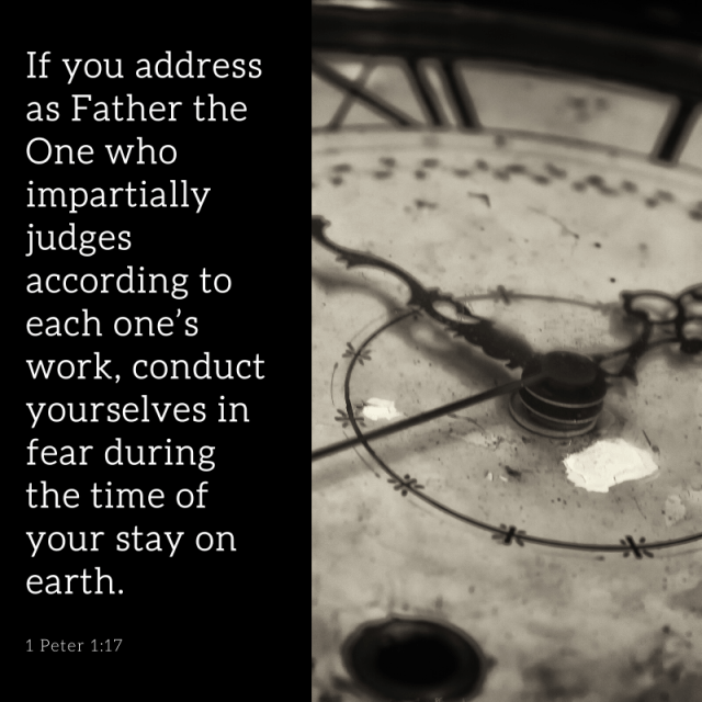 That phrase, “during the time of your stay on earth” is one of my favorites, as it reminds me that this life is only temporary. Our struggle to live godly, to please Christ, to obey His word, will end one day when we see Him face to face. My friend, hold on! We just have to be faithful for a little while longer…because the glorious completion of our salvation is coming!