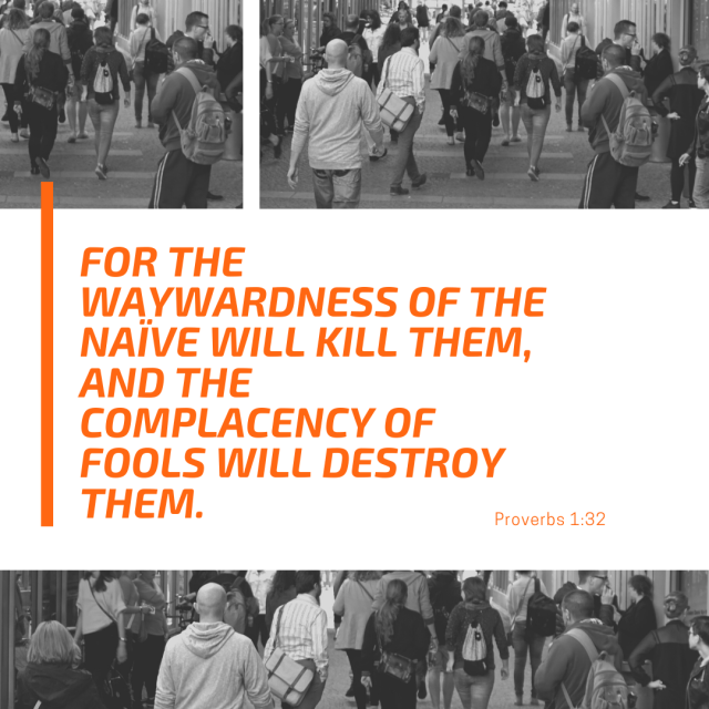 For the waywardness of the naïve will kill them, and the complacency of fools will destroy them. (Proverbs 1:32)