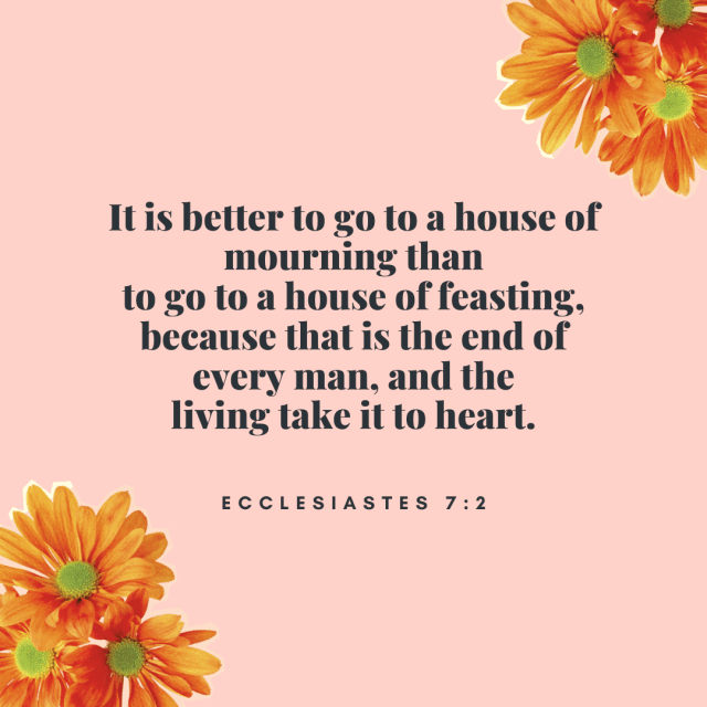 It is better to go to a house of mourning than to go to a house of feasting, because that is the end of every man, and the living take it to heart (Ecclesiastes 7:2).