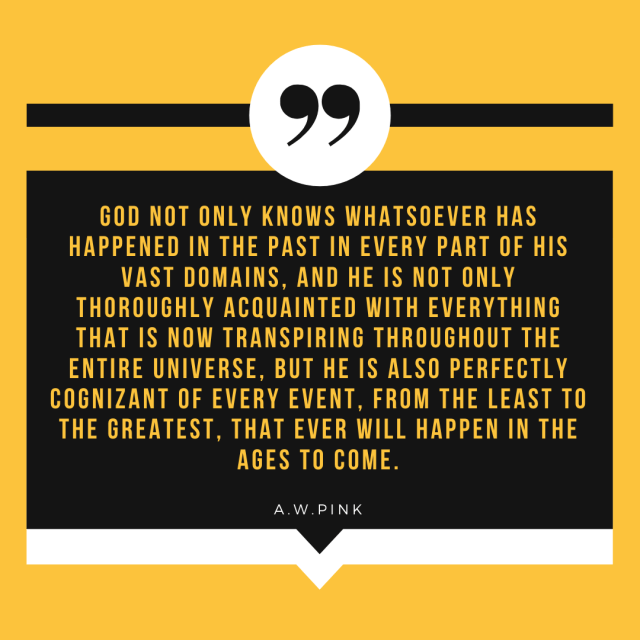 God’s omniscience means that He can never learn anything new. Nothing can surprise Him or take Him unaware. He is never blind-sided! You will never hear God say, “I didn’t see that coming!” or “Who would have thought?” A firm belief in God’s omniscience gives the Christ-follower extraordinary peace, security, and comfort in every area of life.