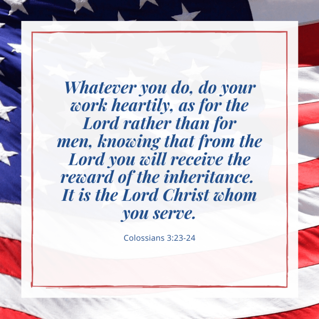 Colossians 3:23-24 – Whatever you do, do your work heartily, as for the Lord rather than for men, knowing that from the Lord you will receive the reward of the inheritance. It is the Lord Christ whom you serve.