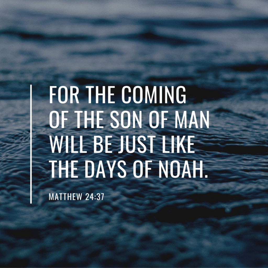 Heaven and earth will pass away, but My words will not pass away. But of that day and hour no one knows, not even the angels of heaven, nor the Son, but the Father alone. For the coming of the Son of Man will be just like the days of Noah. For as in those days before the flood they were eating and drinking, marrying and giving in marriage, until the day that Noah entered the ark, and they did not understand until the flood came and took them all away; so will the coming of the Son of Man be. (Matthew 24:35-39)