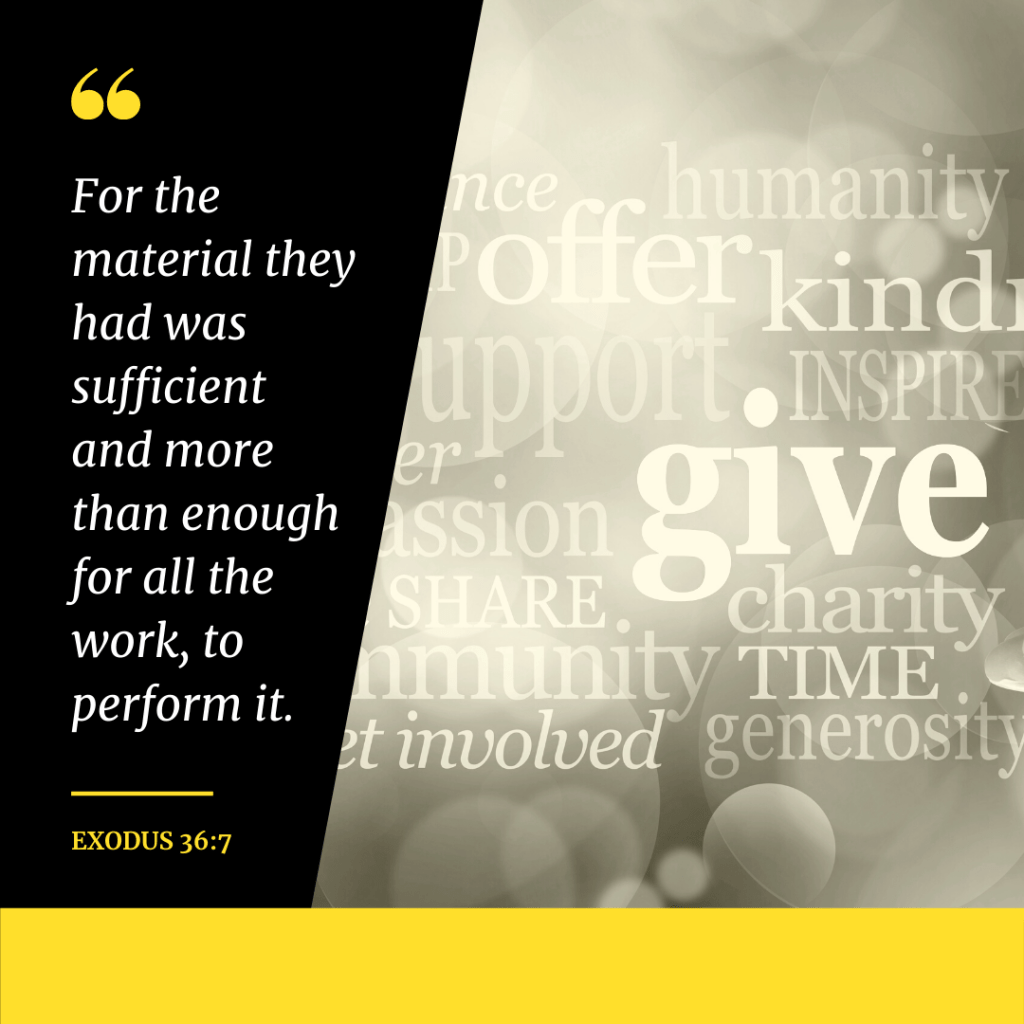 There’s a verse in Exodus 36:7 that I believe describes both the funding of the Tabernacle as well as the process of building it and will even extend to carrying out the daily worship functions.