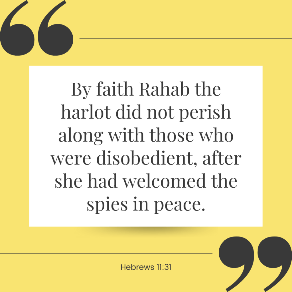 That scarlet cord…what a beautiful picture of the sacrificial blood, not only of the Passover lambs that protected the last generation of Israelites from the angel of death sent to slay Egypt’s firstborn, but a picture of the precious, saving blood of our Rescuer, Jesus. It’s not random that the two spies chose a bright red cord to mark the house of a harlot who placed her faith in Jehovah. God doesn’t do random. The scarlet cord is an intentional illustration that when we come to God, we come through the cross and the shed blood of our Savior. Only Jesus’ blood is able to protect us from the wrath of God against sin.