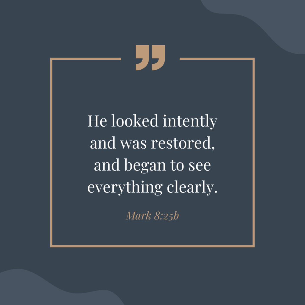 Jesus lays His hands, this time we’re told specifically on the man’s eyes. The man looked intently and was restored, and began to see everything clearly. The healing was complete.