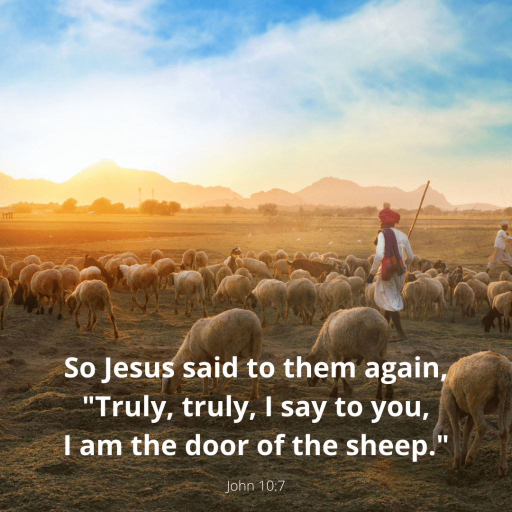 John 10:7-11 – So Jesus said to them again, “Truly, truly, I say to you, “I am the door of the sheep. All who came before me are thieves and robbers, but the sheep did not hear them. I am the door; if anyone enters through Me, he will be saved and will go in and out and find pasture. The thief comes only to steal and kill and destroy; I came that they may have life, and have it abundantly. I am the good shepherd; the good shepherd lays down His life for the sheep.”
