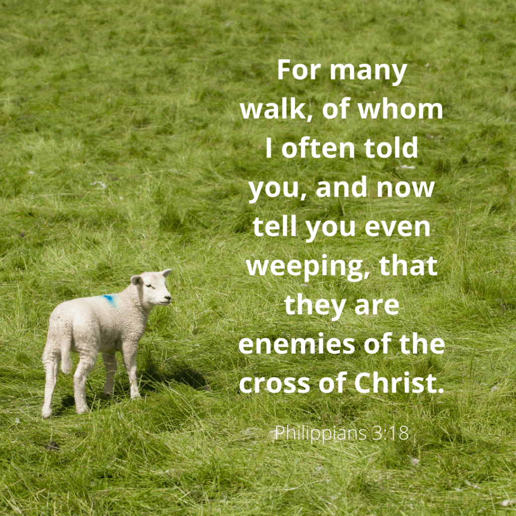 Philippians 3:18 – For many walk, of whom I often told you, and now tell you even weeping, that they are enemies of the cross of Christ.