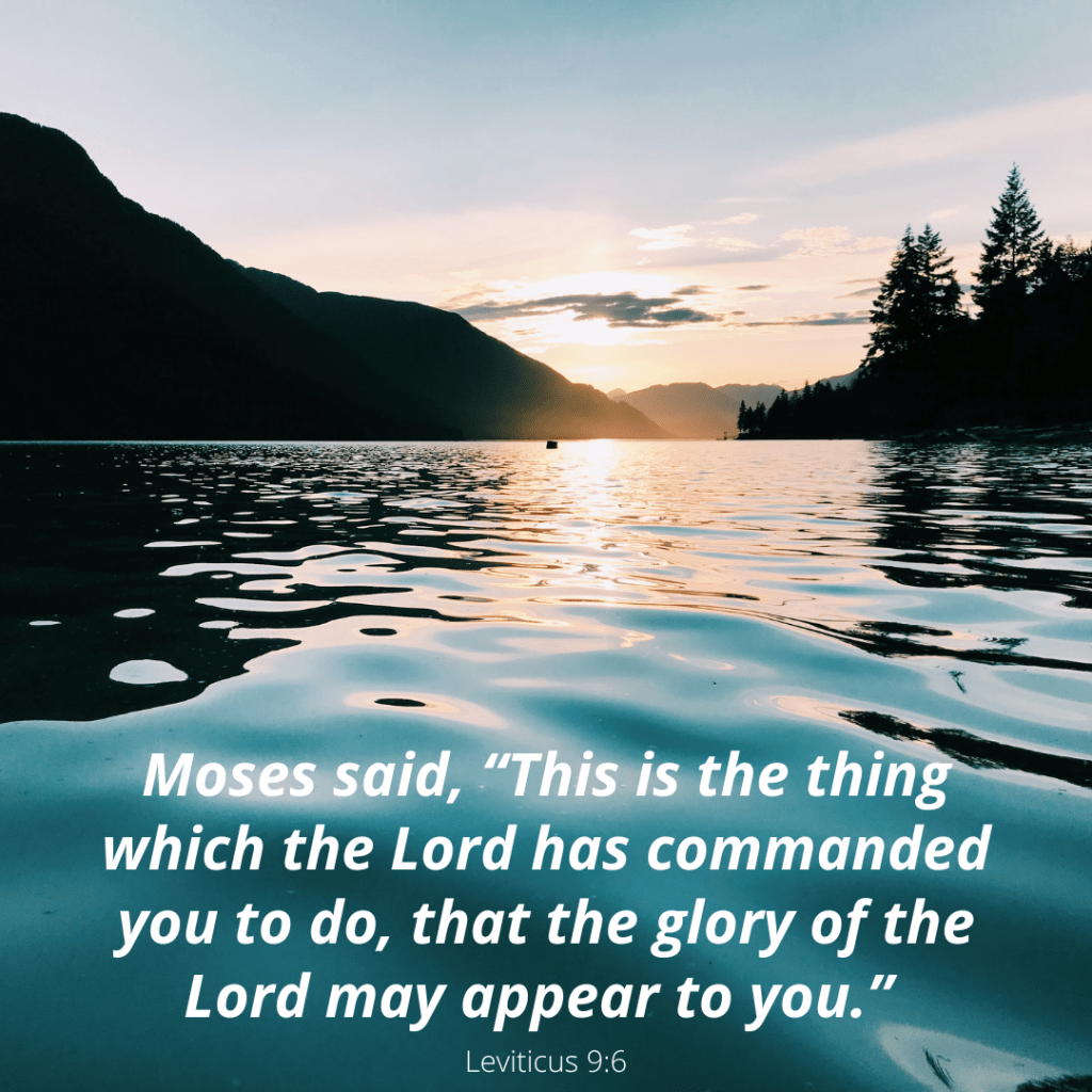 Leviticus 9:5-7a – So they took what Moses had commanded to the front of the tent of meeting, and the whole congregation came near and stood before the Lord. Moses said, “This is the thing which the Lord has commanded you to do, that the glory of the Lord may appear to you.” Then Moses said to Aaron, “Come near to the altar…”