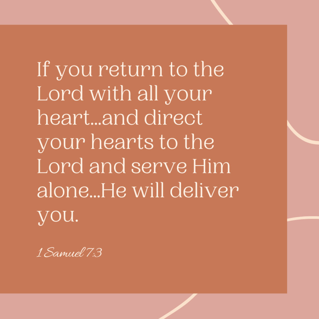1 Samuel 7:3 – Then Samuel spoke to all the house of Israel, saying, “If you return to the Lord with all your heart, remove the foreign gods and the Ashtaroth from among you and direct your hearts to the Lord and serve Him alone; and He will deliver you from the hand of the Philistines.”