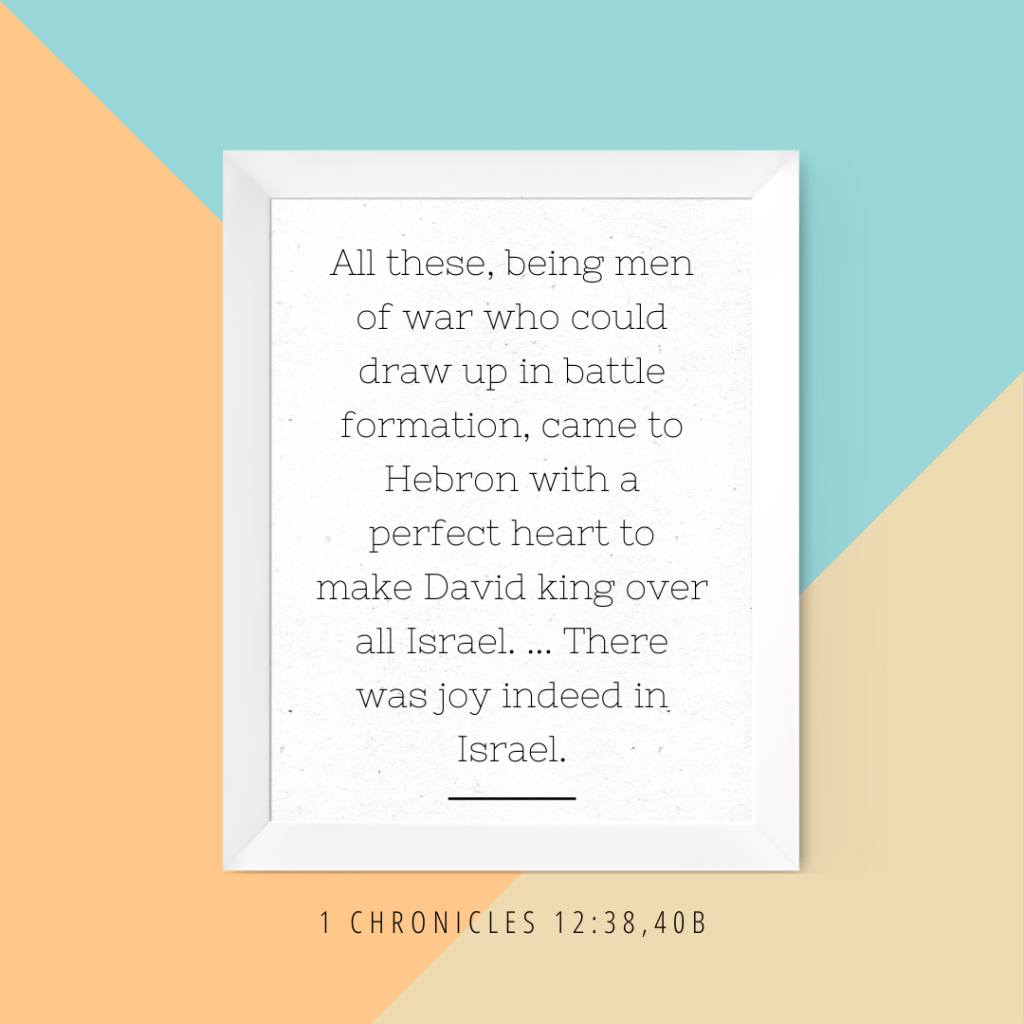 The first eleven chapters of 1 Chronicles are filled with historical records of families – the genealogies of Israel. While there are snippets of interesting facts about the people throughout these lengthy lists, it’s in chapter twelve that the historical narrative picks back up with the establishment of David as king over all of Israel. The authors skip over Saul’s reign and give us only the details of his death. The real story begins when the rightful king – the king who is a man after God’s own heart is set upon the throne.