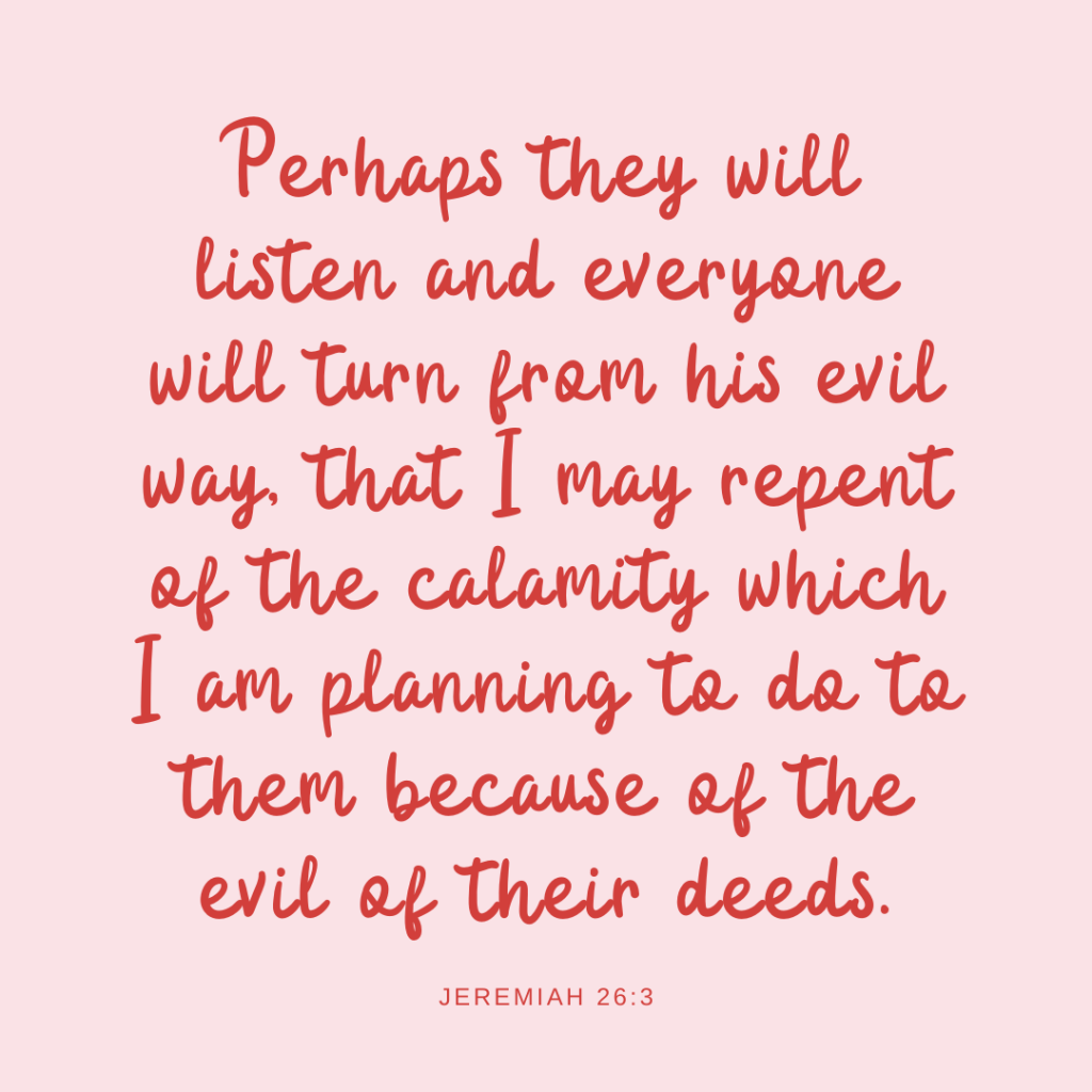 That’s why Jeremiah is called the “weeping prophet” … because his people refused to heed God’s warnings and it broke his heart.