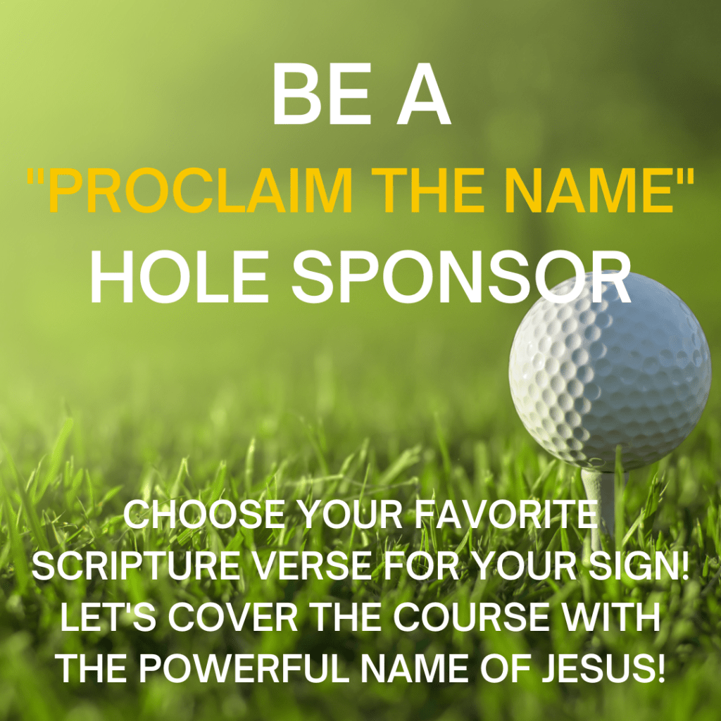 This year, we thought of a unique way to combine the sponsorships to fulfill our desire to proclaim the name of Jesus at this event. We want to cover the golf course with hole sponsor signs that feature scripture verses! Wouldn’t it be cool, if, at every tee box, the 80-plus golfers that are playing are presented with some of our favorite scripture verses that will encourage them if they already know Jesus, and hopefully speak to their hearts if they don’t know Him yet!