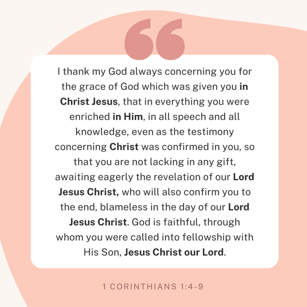 While I’m “on break” from leading a Bible study this summer, I’ve set a goal to study 1 and 2 Corinthians on my own. I can’t seem to get past the first chapter.