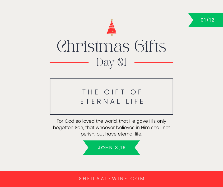 Instead of singing about partridges and geese, (12 Days of Christmas) what if we celebrate Twelve Days of Christmas Gifts? I’d like to think about some of the gifts that the ONE who truly loves us [our true love] has given us through salvation in His Son, Jesus. These won’t be long posts, but just some simple reminders that cause us to reflect on just how much God loves us!